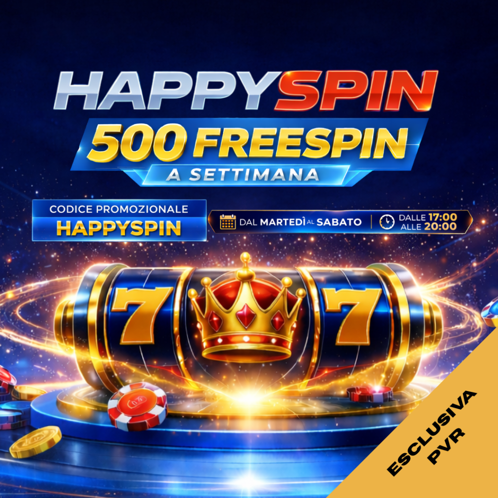 FINO A 500 FREESPIN SU SHINING CROWN DI AMUSNET 👑 SOLO CLIENTI PVR PROMOZIONE VALIDA: dal martedì al sabato, dalle ore 17:00 alle ore 20:00. Partenza Martedì 24 marzo Arriva HAPPYSPIN, il bonus casino perfetto per le tue ricariche serali! Effettua un deposito minimo di 20€ inserendo il codice promozionale HAPPYSPIN nella fascia oraria della promozione e ricevi fino a 100 Free Spins al giorno sulla […]
