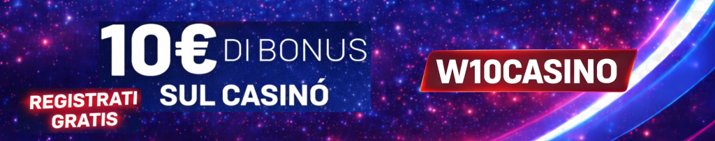 10€ Gratis sul Casinò alla Registrazione! Solo Nuovi Clienti online INIZIO PROMOZIONE: 03/03/2026 FINE PROMOZIONE: 03/04/2026 👉Come Ottenerlo Per ottenere il Bonus di 10€ occorre che al momento della Registrazione venga inserito nell’opposita sezione il Codice Presentatore: TANGOWEB e nella sezione Codice Promozionale: W10CASINO Il Bonus erogato nel seguente modo: Termini e condizioni generali:
