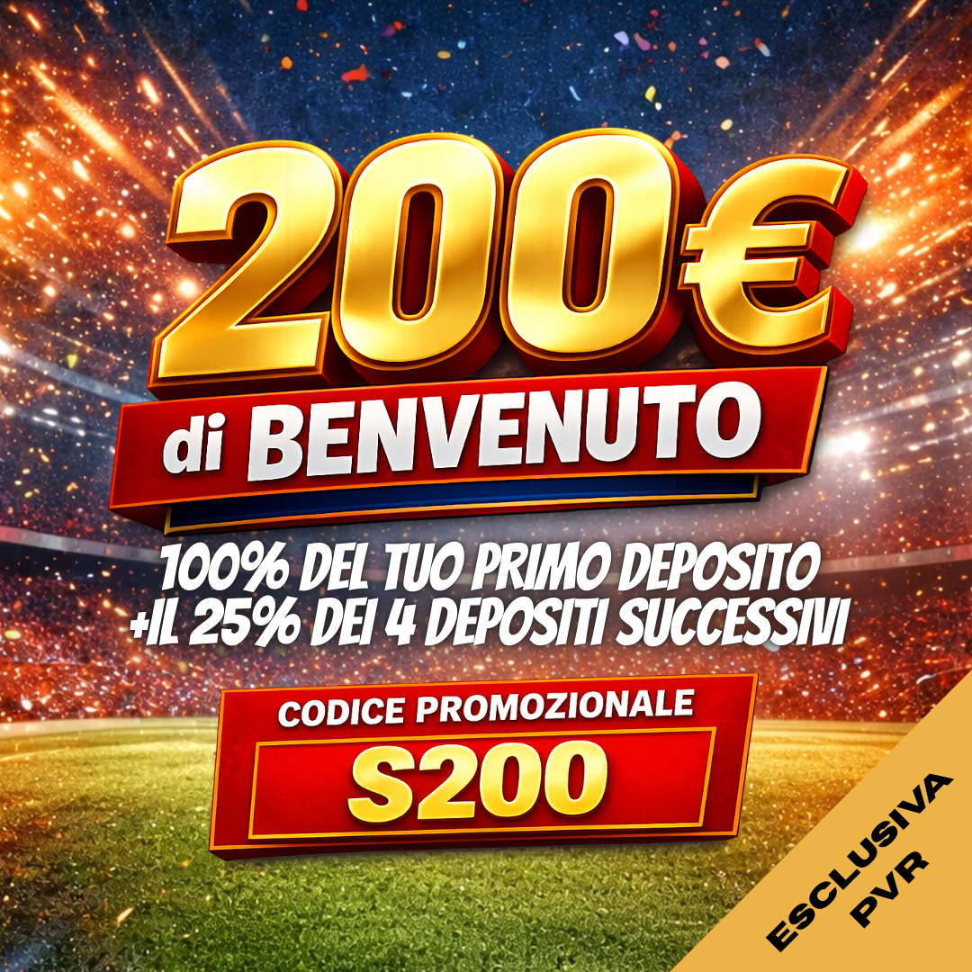 Inserisci il codice: 10SPORT alla registrazione per ottenere fino a 10€ di Real Bonus. Clicca e scopri le condizioni per usufruire del Bonus🥳